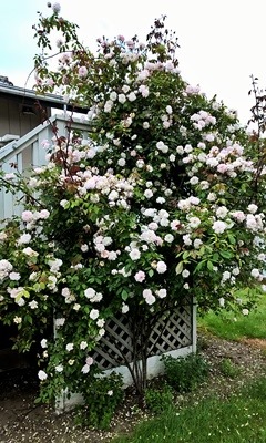 When Rich and I met, I was living in cute three-bedroom house in Sherwood, Oregon with a yard full of flowering bushes, spring bulbs, ornamental grasses, creeping pyracantha, and a giant rose bush, Cecile Brunner, locate in the far corner of my front yard. Once it took root, Cecile Brunner grew profusely, needing to be aggressively trimmed every year to prevent it from cascading over the sidewalk.