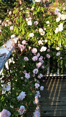 Like Cecile Brunner, once placed in the ground, and given nutrients, they thrived. Today, Cecile Brunner has grown up our two-story deck, and annually rewarding us with sprays of petite pink roses. I suspect the other death row roses will continue to flourish.