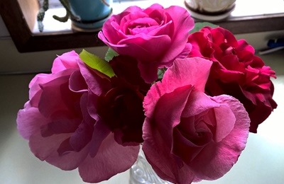 … yes, the photos are of Cecile Brunner, and the blooms are from several of the rose bushes from my mother’s house.