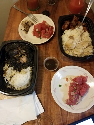 Three Islands in Ten Days 23 Tuesday Oct 2018 Original size at 300 × 400 ≈ Leave a comment Plate lunch we enjoyed last evening in Oahu in Airbnb