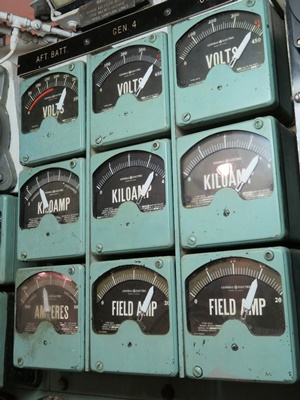 One of the more interesting aspects of the Naval museum was submarine and unit insignias, some of which were drawn by Disney artists, like caricatures of fish, turtles, sharks, dragons, and other animals holding torpedoes, tridents and other weaponry. Here’s the one for the Bowfin.