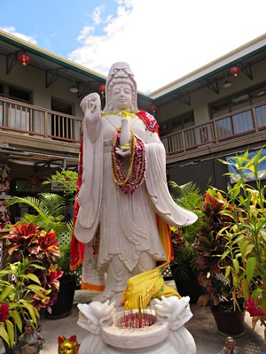 One of the oldest Chinatowns in the US, the area is abounding with historic buildings with ornate facades, carved wooden doors, windows with colorful shutters, and vintage signs. Where we parked, a beautiful Asian woman in a fluffy white wedding dress, with bright red high-heels and red lipstick was posing on the steps of a historical building with a photographer and his assistance arranging her dress. I wish I’d slowed for a minute to take her picture, but we had to be at Pearl Harbor at a specific time to take the tour.