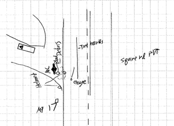 Mr. Lary’s motorcycle continued north and to the east sliding on the ground. Ms. M. was able to steer her vehicle to a stop on the asphalt part of Squire Rd. just east of the motorcycle.